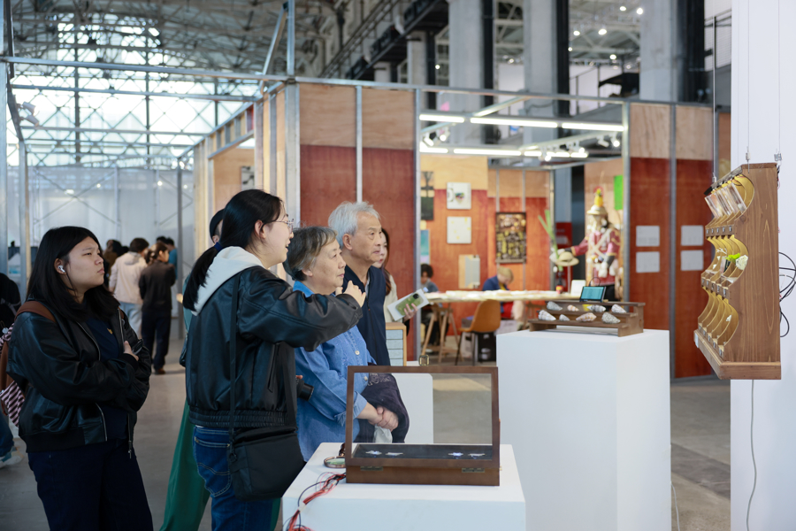 作为FutureLab的核心板块之一,2025年“院校展览”部分汇聚了近20所海内外知名高校及项目,其中中国美术学院创新设计学院带来智能造物研究所以生物学思维为核心的课程成果;新加坡南洋艺术学院以“在传承中求变,于创新中守根”为核心,探讨东南亚文化遗产如何激发当代的创意,上海纽约大学-交互媒体艺术、纽约大学蒂势艺术学院与上海纽约大学联合培养-互动媒体艺术项目、纽约大学人工智能学生作品全球联展以“流”为题,生动呈现纽约大学全球教育体系中跨地域、跨学科艺术家们的学习与研究轨迹;上海视觉艺术学院美术与文物保护学院与数字媒体艺术专业以数字语言重构华夏文明的节日文化。西交利物浦大学设计学院则将自然材料通过数字技术的转译,创造出全新面貌的设计作品等等。